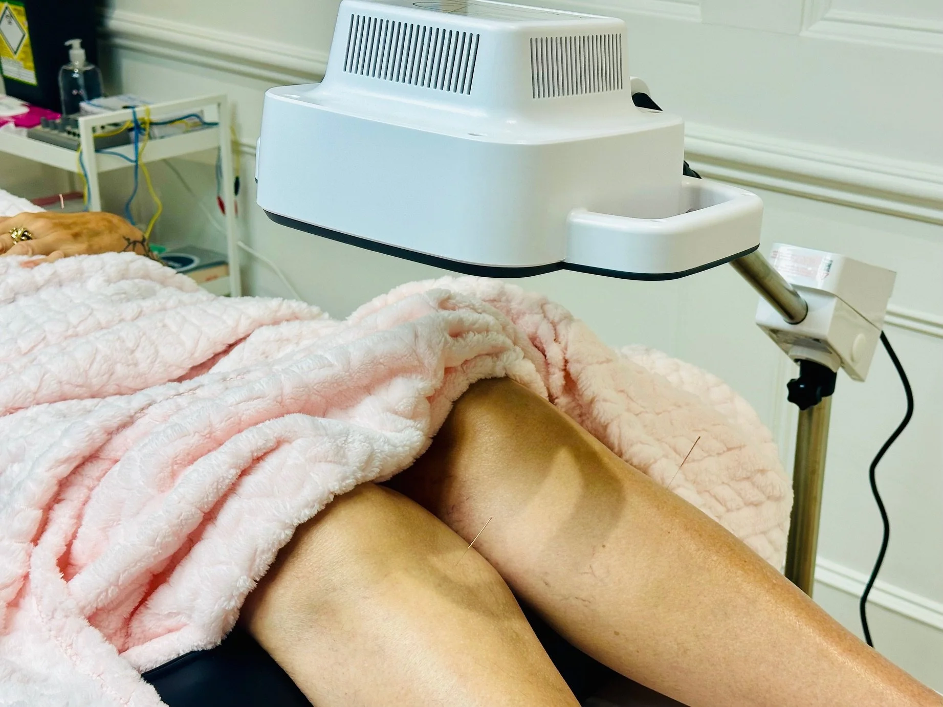 In Traditional Chinese Medicine, warmth is often used to dispel cold, stimulate the flow of Qi & blood and relieve stagnation. The heat lamp provides a soothing, targeted heat that complements acupuncture by encouraging deeper relaxation and enhancing the therapeutic effect of the needles.