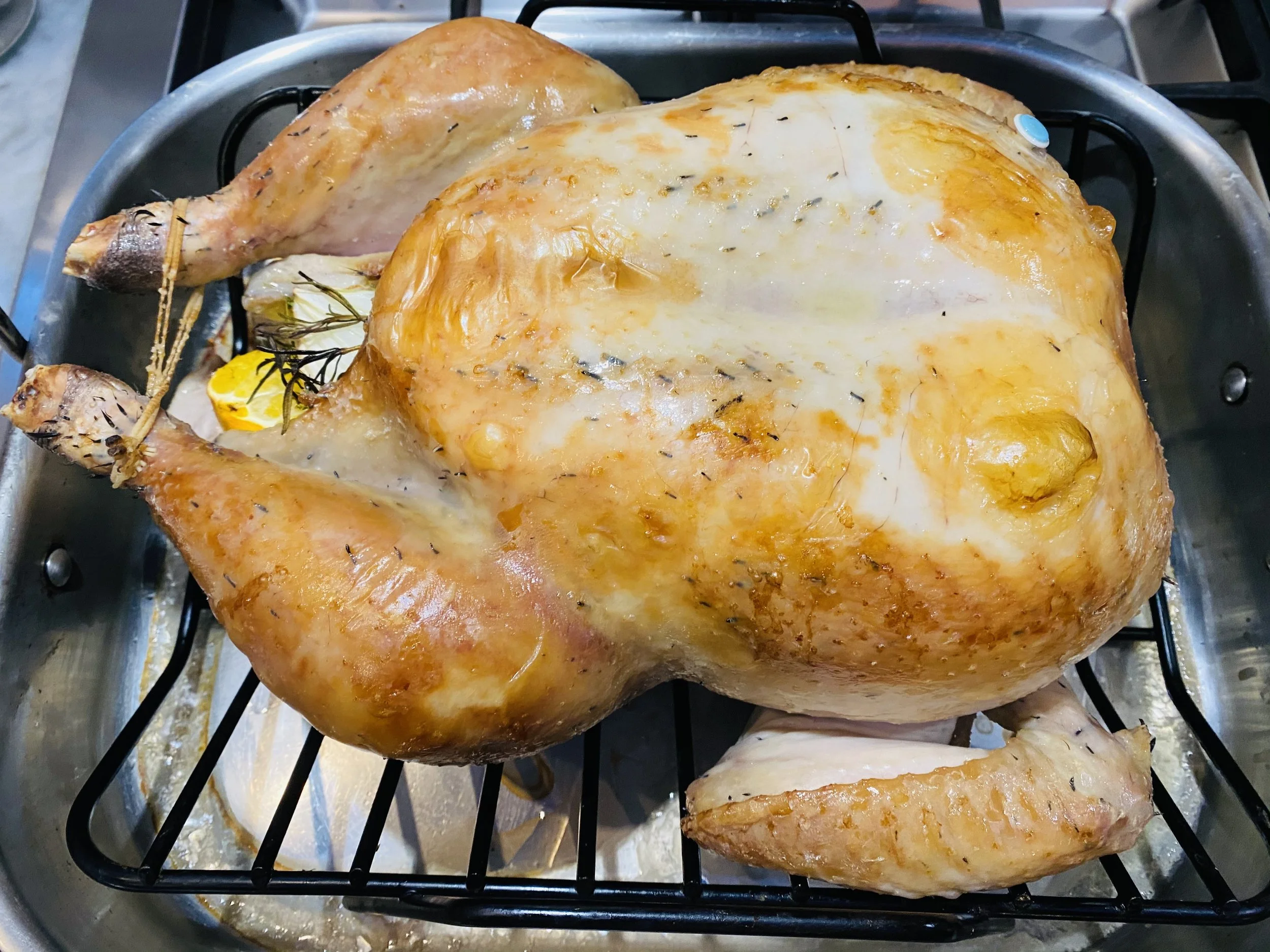 Once the turkey has reached the desired internal temperature of 65°C, according to the temperature probe, remove it from the oven.