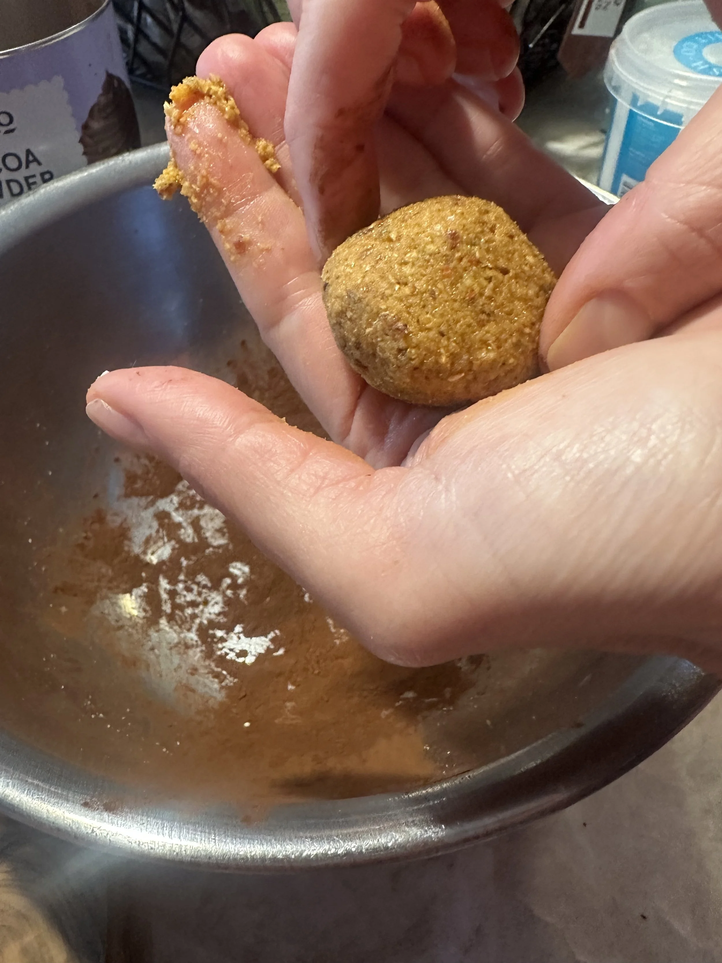 Remove from fridge and roll the balls in unsweetened cocoa powder.
